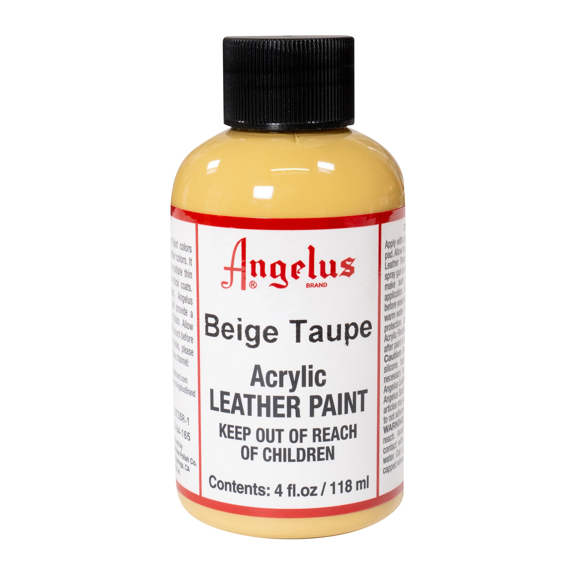 Koska Angelus Leather Paint -nahkamaali on vesiohenteista, roiskeet voidaan pestä pois vaivatta, ja maalattu pinta on helppo puhdistaa. Lisäksi se luo nahalle suojaavan kerroksen, joka kestää huonojakin sääolosuhteita. Maalia on saatavana kahdessa eri koossa: 29,5 ml ja 118 ml.